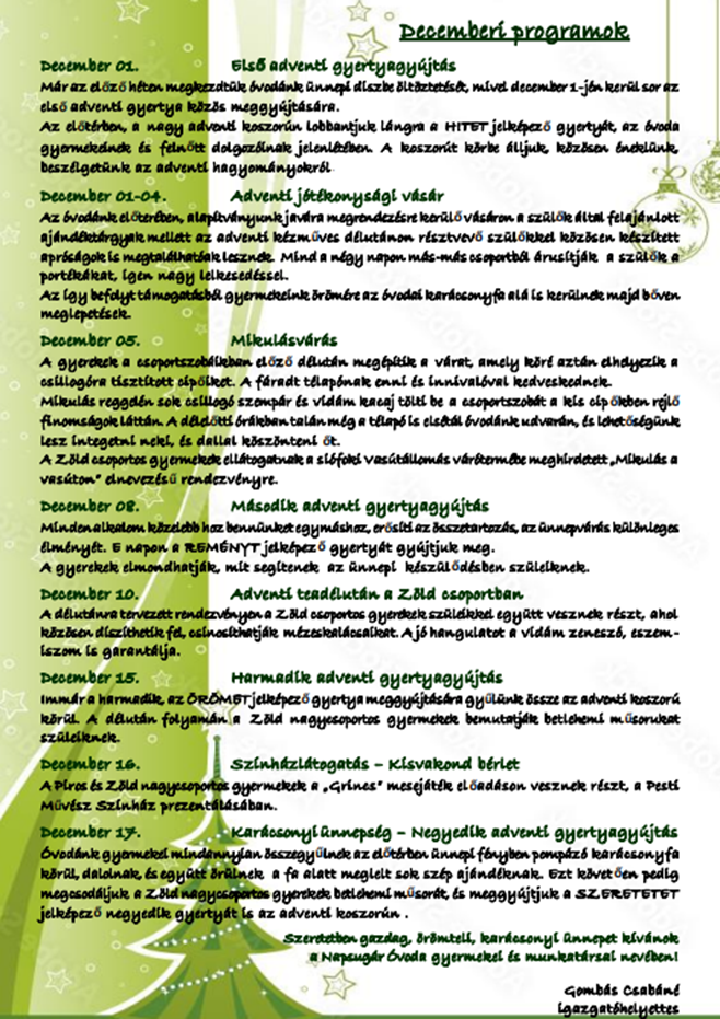 2025. Decemberi programjaink